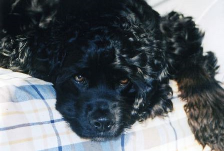 You came to me at three months of age, a beautiful, shy, sweet baby boy with glossy black hair. When I picked you up into my arms, you gave me a gentle kiss and nestled into my neck. It was love at first sight. You were mine and I was yours and it stayed that way throughout your life. We went to Carolark for puppy training and you relished learning new tricks and commands. What a smart boy you were! When I was having wine with friends, you would imbibe your fair share; you did the same with Bailey’s. You loved everyone you met and they, in turn, loved you. You never disappointed me, never chewed anything that wasn’t yours, never did a spiteful thing in your life. You were goodness personified. You learned early in your all too brief life that the way to get what you wanted was to look at me shyly and stick out a little bit of your bright pink tongue that was in such contrast to your black hair. You made my knees go weak when you did that – I couldn’t say no! I was so blessed to be able to spend almost 15 years with you, my precious Cocker Spaniel. You weren’t a dog, you were my little boy. I will always love and miss you. Until we meet again over the Rainbow Bridge.